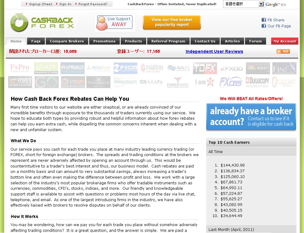FX海外口座を開設するなら絶対に忘れてはいけない Cash Back Forex(キャッシュバックフォレックス) についての日本語解説&サポートサイトです 登録特典あります!