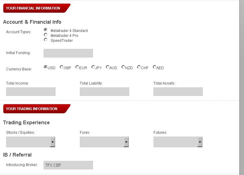 次にページ下部にあります Open trading account をクリックして次のページへ。